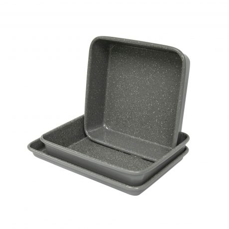 - Includes a 7 x 0.75-Inch Square Pan, a 9 x 6-Inch Cookie Sheet and a 8 x 6 x 1.5-Inch Rectangle Pan. (Interior pan dimensions)